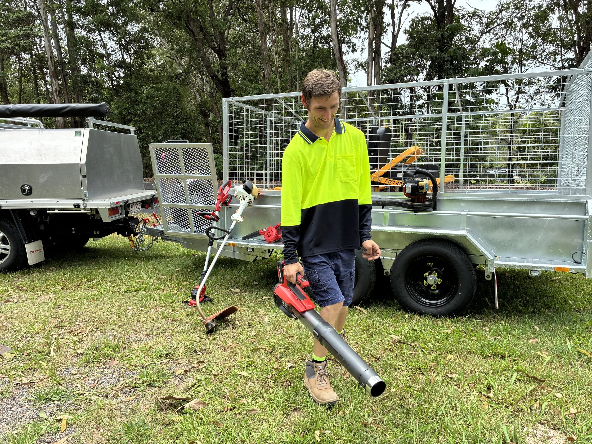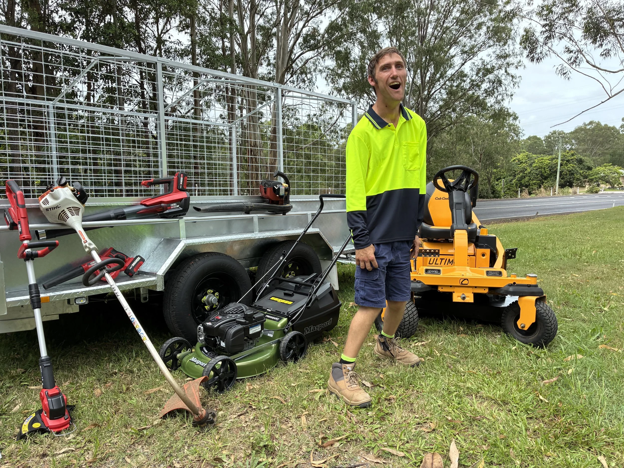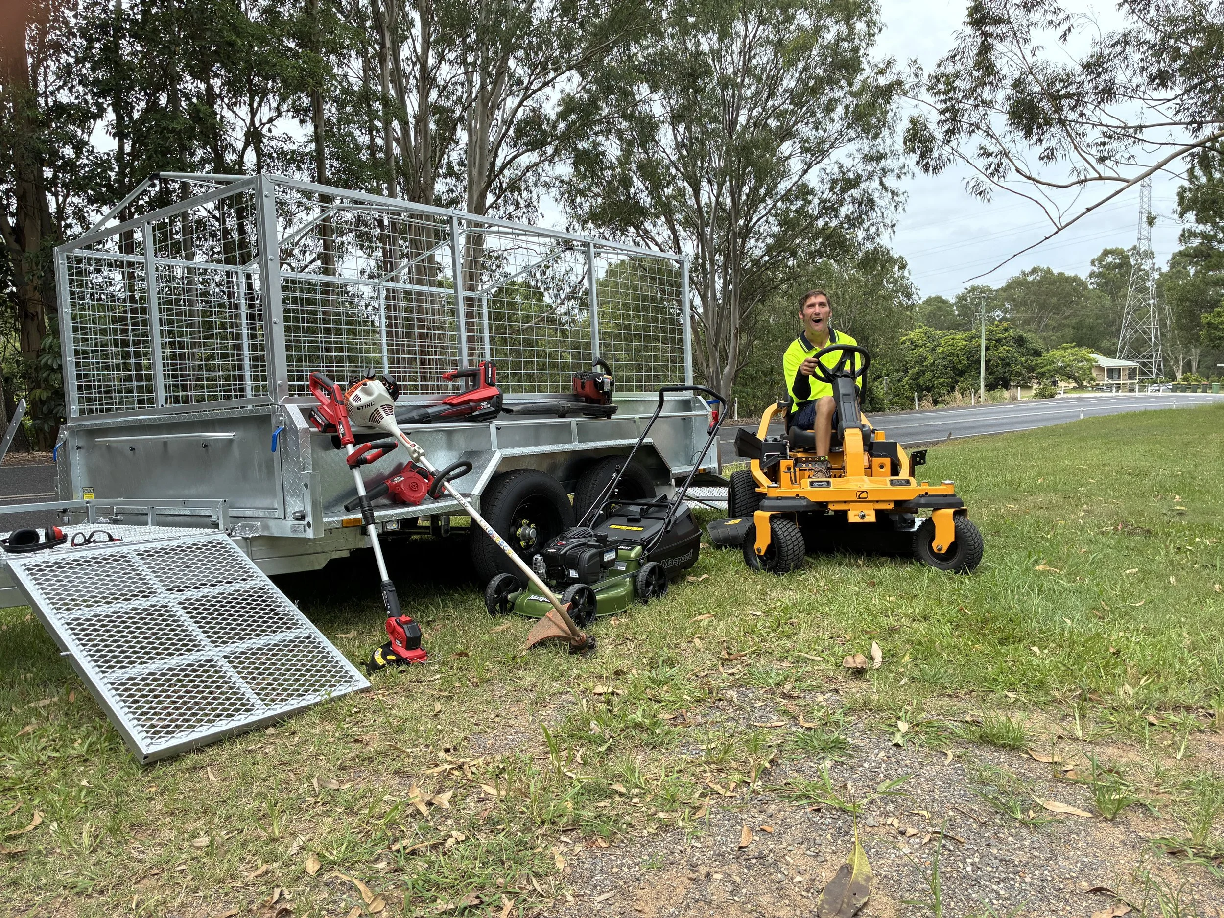 Working from Kawana to Coolum and the hinterland, I come equipped with a zero-turn ride-on mower, push mower, petrol and battery powered line trimmers and blowers, all transported on a large tandem axle trailer with a capacity to remove light garden waste. I focus the majority of my work on just mowing and only do light trimming around the edges where needed. I also have the ability to catch grass clippings on small lawns with the push mower.
